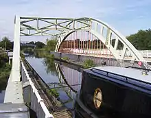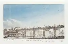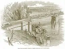 Незабаром над мостом було прокладено ще й водоносний дерев'яний лотік, що спирався на чавунні опори мосту.[30] Лотік, що був над мостом, було демонтовано у 1850 році. Вважається найстарішим мостом, на якому було прокладено залізничні рейки.[31][32][33]