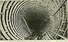 За письмовими даними у 1795 році чавун вперше було використано для виробництва тюбінгів, який було використано для стволу на шахті у місті Тайнсайд на півночі Англії.[16] В подальшому чавунний тюбінг набув широкого застосування при будівництві тунелів метрополітенів.