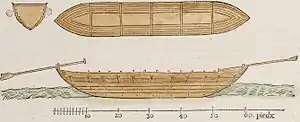 ![]() Зображення судна (чайки) запорозьких козаків з книги «Опис України» Ґійома Левассера де Боплана | |