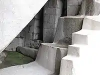 Рідше можна побачити п'ять щаблів, як наприклад за 40 кілометрів від Куско в Ольянтайтамбо (Перу). Тут, в залишках основи будівлі, за традицією умовно названої Храмом Сонця, вони напівстерті, але все ще помітні на Стіні шести мегалітів з рожевого порфіру, який не поступається по твердості граніту.