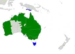 Вид трапляється на всій території Новій Гвінеї та Австралії, за винятком посушливих регіонів. Зареєстровані залітні особини у Новій Зеландії.