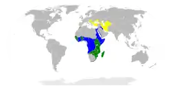 Гніздовий ареал охоплює Африку, Південну Європу та Південно-західну Азію. Зимує на узбережжі Середземного моря в Європі та Африці. В Україні гніздиться у пониззі Дунаю, Дністра і Дніпра, в Криму на (Лебединих островах, Східному Сиваші), на півдні Запорізької області (в заплаві р. Молочної) та в інших місцях півдня України. Під час міграцій зустрічається майже на всіх водоймах півдня України, в тому числі, двічі, навесні і восени затримується для прогодування і відпочинку перед далекими маршрутами польоту в Тузловських лиманах[2].