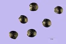 Плід — коробочка кулясто — тригранна, з широкозворотніми — серцеподібними стулками. Насінини кулькоподібні або майже кулькоподібні, за забарвленням майже чорні. Цвіте у червні-липні.