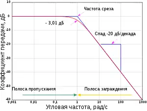 - При цьому амплітуда сигналу на частоті зрізу рівна від амплітуди сигналу в смузі пропускання.