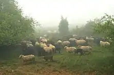 Отара на гірському пасовищі на схилі Великого Чимгана. |
