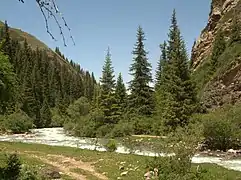 Витік Аксая на схилі Великого Чимгана. |