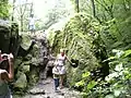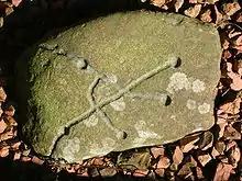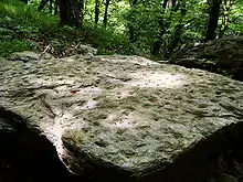 Чашочний камінь з двома лунками в урочищі Три дуби. Західний Кавказ