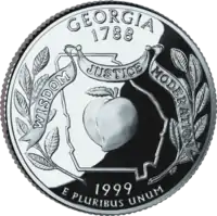 Персик, гілки дуба (дерево штату), обриси штату Баннер з текстом: "Wisdom, Justice, Moderation" (девіз штату) |