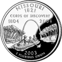 Ворота Заходу, Льюїс та Кларк[9] повертаються вниз річкою Міссурі Напис: "Corps of Discovery 1804–2004" |
