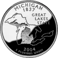 Обриси штату, контур Великих озер Напис: "Great Lakes State" |