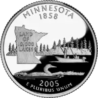Гагара полярна (пташка штату), риболовля, мапа штату Напис: "Land of 10,000 Lakes" |