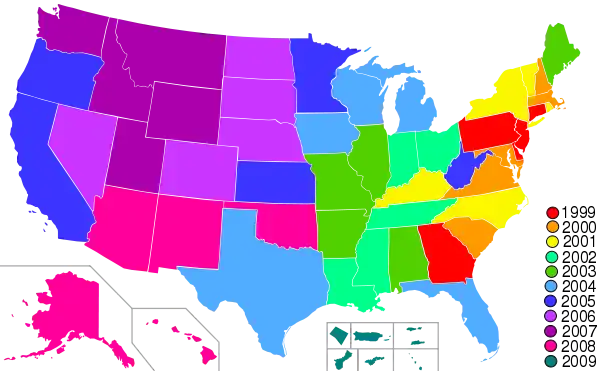 | 2009 | Округ Колумбія | Пуерто-Рико | Гуам | Американське Самоа | Американські Віргінські Острови | Північні Маріанські Острови |