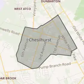 - DP-1 - Profile of General Population and Housing Characteristics: 2010 for Chesilhurst borough, Camden County, New Jersey, Бюро перепису населення США. Accessed October 4, 2012.(англ.) Наведено за англійською вікіпедією.