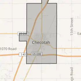 Чекота знаходить на висоті 199 м над рівнем моря. Поряд має трасу I-40 і U.S. Route 69, а також озеро Юфала (англ. Eufaula Lake), яке є одним із найбільших штучних озер у країні та має 1 030 км берегової лінії.