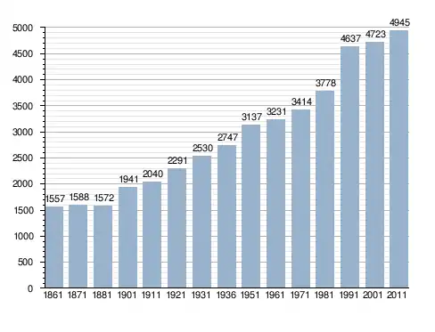 Станом на 31 грудня 2014 року в муніципалітеті офіційно проживало 377 іноземців з 41 країни, серед них 44 громадяни країн Євросоюзу та 41 громадянин України.[4]