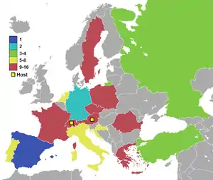 | «Ернст-Гаппель-Штадіон» | 53 008 | «Аустрія» | 3 групові матчі, 2 чвертьфінали, півфінал та фінал | ||