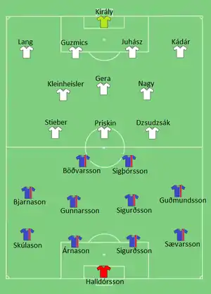 - Tactical Line-ups – Iceland v Hungary. UEFA.com. Union of European Football Associations. 18 червня 2016. Процитовано 18 червня 2016.