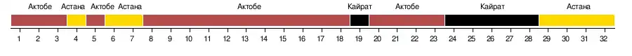 | Астана | 6:1 | 5:1 | 5:0 | 3:0 | 2:0 | |