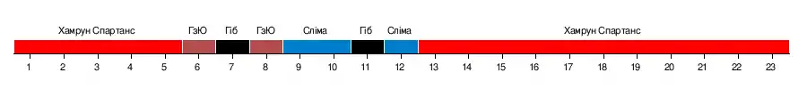 | 1 | Хамрун Спартанс[lower-alpha 1] | 23 | 17 | 5 | 1 | 56 | 20 | +36 | 56 | |