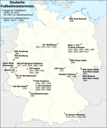 - До цього списку входять лише чемпіони Бундесліги, без титулів до введення Бундесліги в 1990 році.