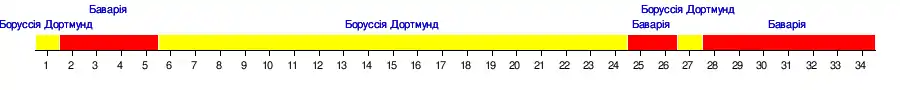 | Боруссія Дортмунд | 1 | 4 | 2 | 3 | 2 | 1 | 1 | 1 | 1 | 1 | 1 | 1 | 1 | 1 | 1 | 1 | 1 | 1 | 1 | 1 | 1 | 1 | 1 | 1 | 2 | 2 | 1 | 2 | 2 | 2 | 2 | 2 | 2 | 2 |