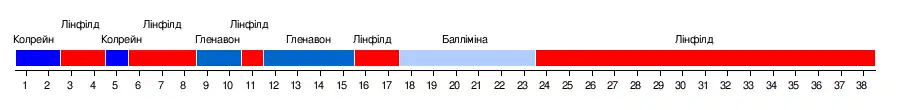 | 10. Лінфілд | 0-0 | 2-1 | 4-2 | 1-2 | 4-1 | 3-0 | 0-0 | 4-0 | 3-0 | 3-1 | 1-1 | |