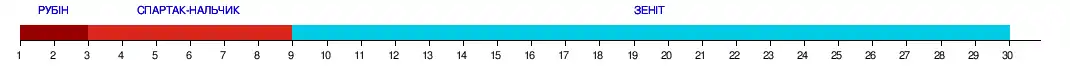 | 1 | Зеніт | 30 | 20 | 8 | 2 | 61−21 | 68 |