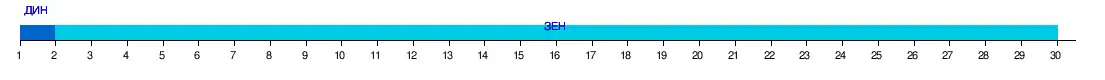 | 8 | Мордовія | 30 | 11 | 5 | 14 | 22−43 | 38 |