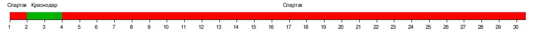 | Краснодар | 1:0 | 0:0 | 2:0 | 2:1 | 1:1 | 1:2 | 3:3 | 2:1 | 1:0 | 2:2 | 4:0 | 3:0 | 3:0 | 0:0 | 1:1 | |