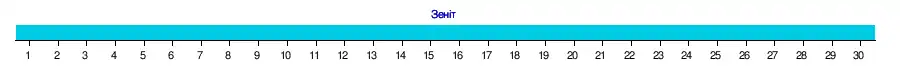 | Зеніт | 1 | 1 | 1 | 1 | 1 | 1 | 1 | 1 | 1 | 1 | 1 | 1 | 1 | 1 | 1 | 1 | 1 | 1 | 1 | 1 | 1 | 1 | 1 | 1 | 1 | 1 | 1 | 1 | 1 | 1 |