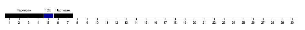 | 1 | Партизан | 6 | 6 | 0 | 0 | 22 | 1 | +21 | 18 | Чемпіонський раунд |