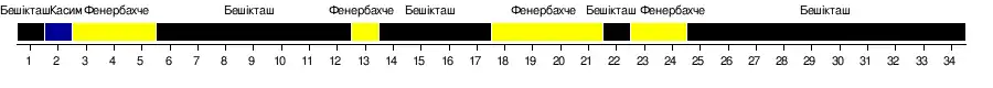 | Бешікташ | 0-2 | 1-0 | –––– | 3-2 | 1-0 | 3-1 | 3-2 | 2-1 | 4-0 | 1-0 | 2-0 | 3-3 | 4-0 | 4-0 | 1-0 | 3-1 | 2-0 | 1-2 |