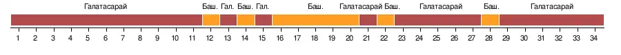 | Галатасарай | 4-2 | 2-0 | 3-0 | 2-0 | 5-0 | 0-0 | –––– | 5-1 | 3-1 | 2-0 | 3-2 | 2-0 | 4-1 | 2-1 | 2-0 | 3-0 | 2-1 | 2-0 |