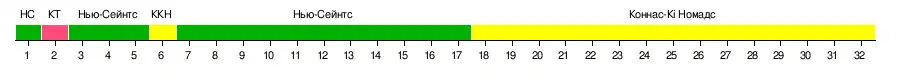 | Коннас-Кі Номадс | 2-0 | 1-1 | 3-1 | 3-1 | 3-1 | –––– | 2-1 | 2-0 | 2-0 | 2-1 | 1-0 | 2-0 |
