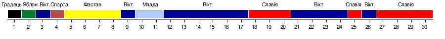 | Вікторія | 1-1 | 2-0 | 4-1 | 3-1 | 2-0 | 3-3 | 1-0 | 3-1 | 2-0 | 1-0 | 1-0 | 2-2 | 2-0 | 2-0 | 0-2 | |