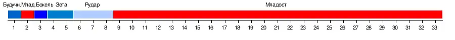 | 1 | Младост | 33 | 21 | 4 | 8 | 53−28 | 67 |