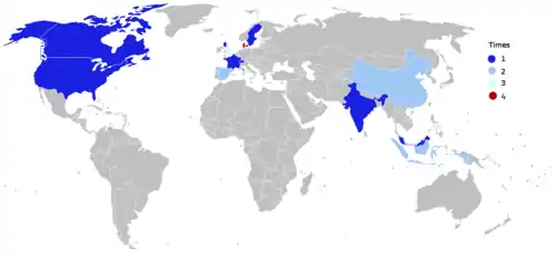 | Рік | № | Місто | Країна |