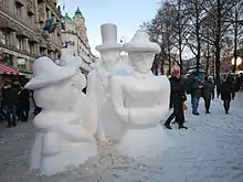 Скульптури із криги та снігу «Вечір на Карл Йоган» за мотивами Едварда Мюнха, розташовані на головній вулиці Осло Карл Йога гейт під час чемпіонату світу як складова культурної програми. Скульптор Лука Бонетті, Італія.