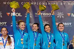 Українська жіноча командна шабля яка виграла золоту медаль на чемпіонаті світу з фехтування 2013 року. | ||
