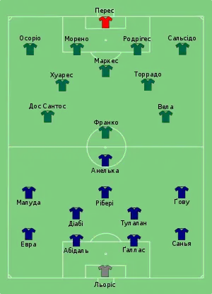 - Розташування гравців у матчі Мексика — Уругвай. ФІФА, 22 червня 2010