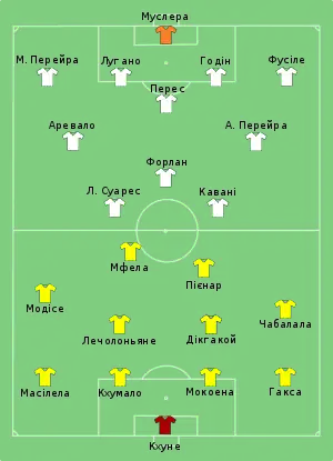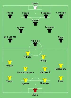 - Розташування гравців у матчі ПАР — Уругвай. ФІФА, 16 червня 2010