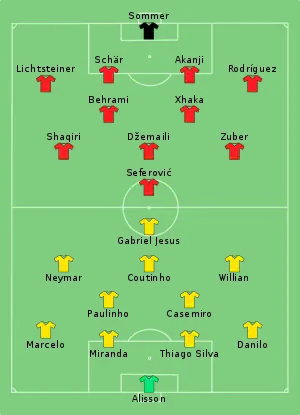 - Tactical Line-up – Group E – Brazil-Switzerland (PDF). FIFA.com. Fédération Internationale de Football Association. 17 червня 2018. Процитовано 17 червня 2018.