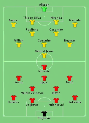 - Tactical Line-up – Group E – Serbia v Brazil (PDF). FIFA.com. Fédération Internationale de Football Association. 27 червня 2018. Процитовано 27 червня 2018.