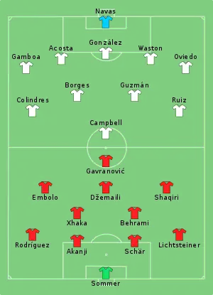 - Tactical Line-up – Group E – Switzerland v Costa Rica (PDF). FIFA.com. Fédération Internationale de Football Association. 27 червня 2018. Процитовано 27 червня 2018.