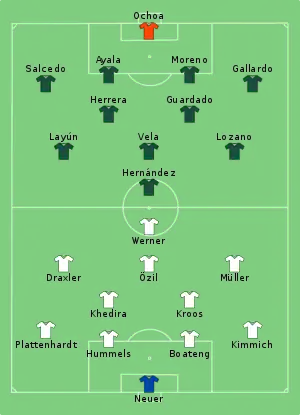 - Tactical Line-up – Group F – Germany-Mexico (PDF). FIFA.com. Fédération Internationale de Football Association. 17 червня 2018. Процитовано 17 червня 2018.