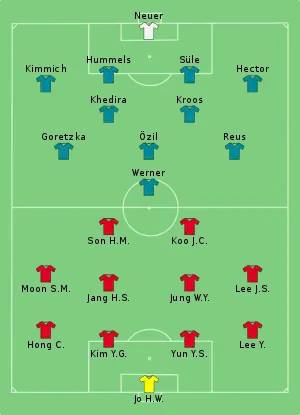 - Tactical Line-up – Group F – Korea Republic v Germany (PDF). FIFA.com. Fédération Internationale de Football Association. 27 червня 2018. Процитовано 27 червня 2018.