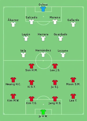 - Tactical Line-up – Group F – Korea Republic-Mexico (PDF). FIFA.com. Fédération Internationale de Football Association. 23 червня 2018. Процитовано 23 червня 2018.