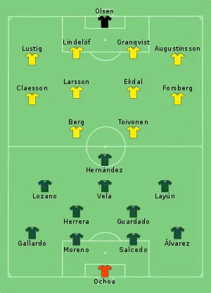 - Tactical Line-up – Group F – Mexico v Sweden (PDF). FIFA.com. Fédération Internationale de Football Association. 27 червня 2018. Процитовано 27 червня 2018.