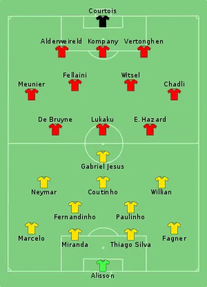 29. Tactical Line-up – Quarter-final – Brazil v Belgium (PDF). FIFA.com. ФІФА. 6 липня 2018. Процитовано 6 липня 2018. (англ.)