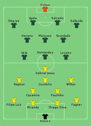 15. Tactical Line-up – Round of 16 – Brazil v Mexico (PDF). FIFA.com. Fédération Internationale de Football Association. 2 липня 2018. Процитовано 2 липня 2018.